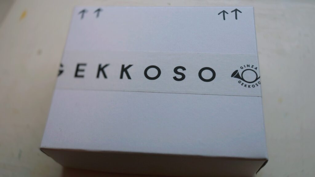 紙袋を開けるとロゴのテープが巻かれた小さな箱。