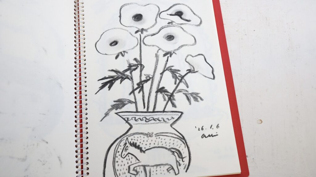 筆箱に何年も使ってない木炭を見つけ、手が黒くなるのを厭いつつ、なんとなく今日は使ってみることに。木炭を使うなんて、学生以来かも。よく捨てずにまだとっておいたこと。